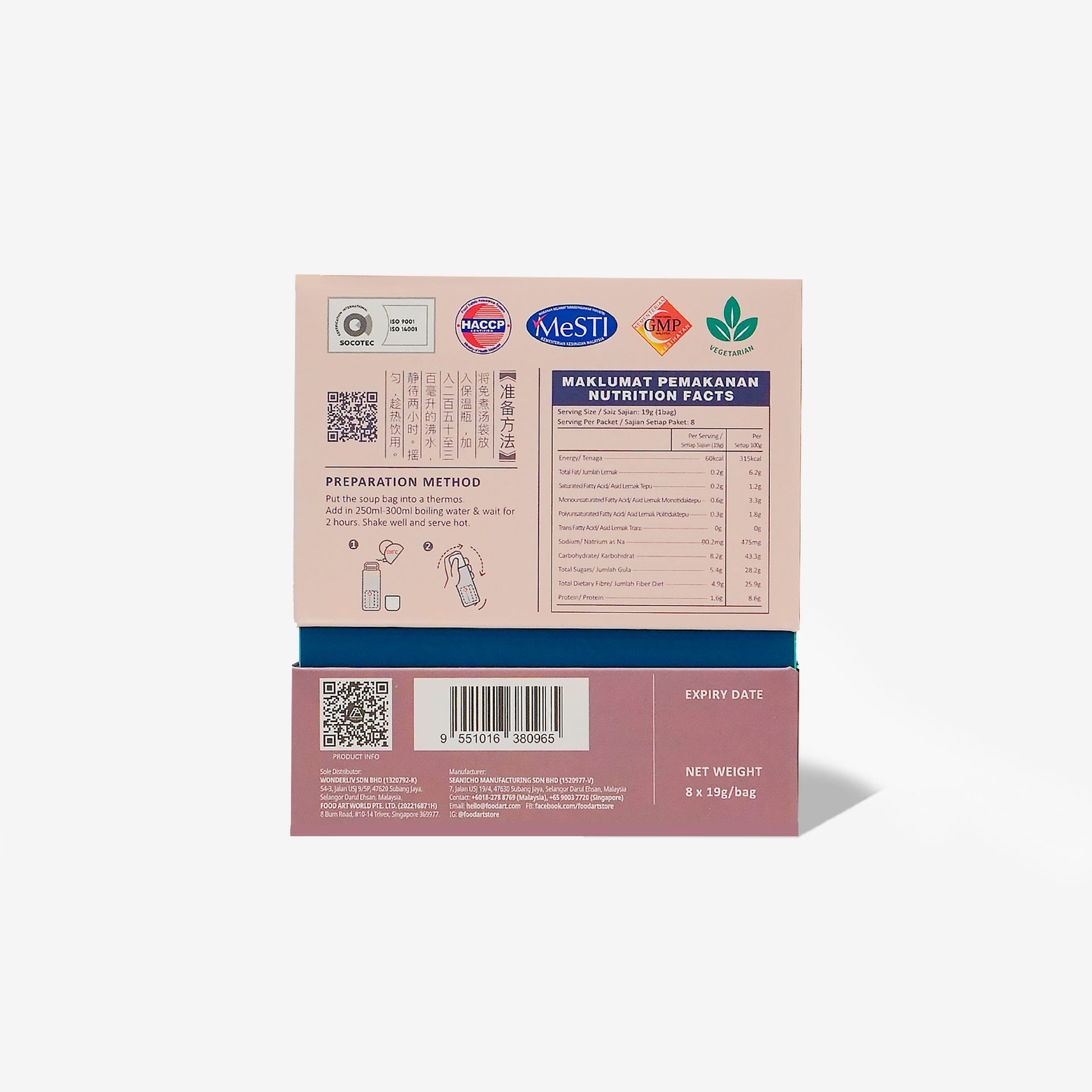 Made with loquat leaf, apricot seed, and other herbal ingredients, this formula gently soothes coughs, dissolves phlegm, and moistens the throat, while also supporting immune health. No-cook soup—simply brew and drink.