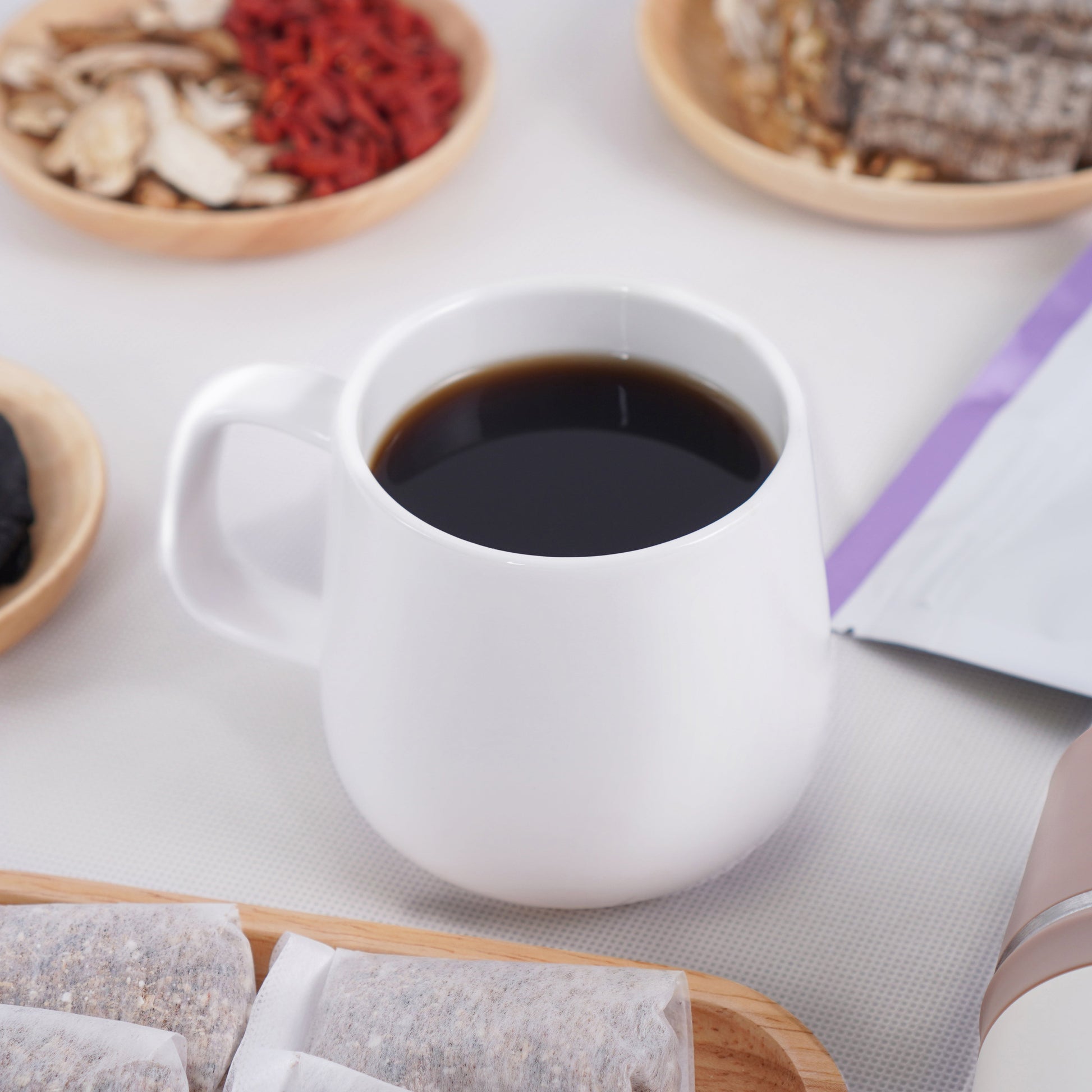Black Dates*, Prepared Rehmannia, White Peony Root, Honey Licorice Root, Codonopsis*, Mushroom Seasoning, Goji Berry, Eucommia Bark, Poria Cocos*, Radix Angelica*, Bai Zhu, Chuanxiong