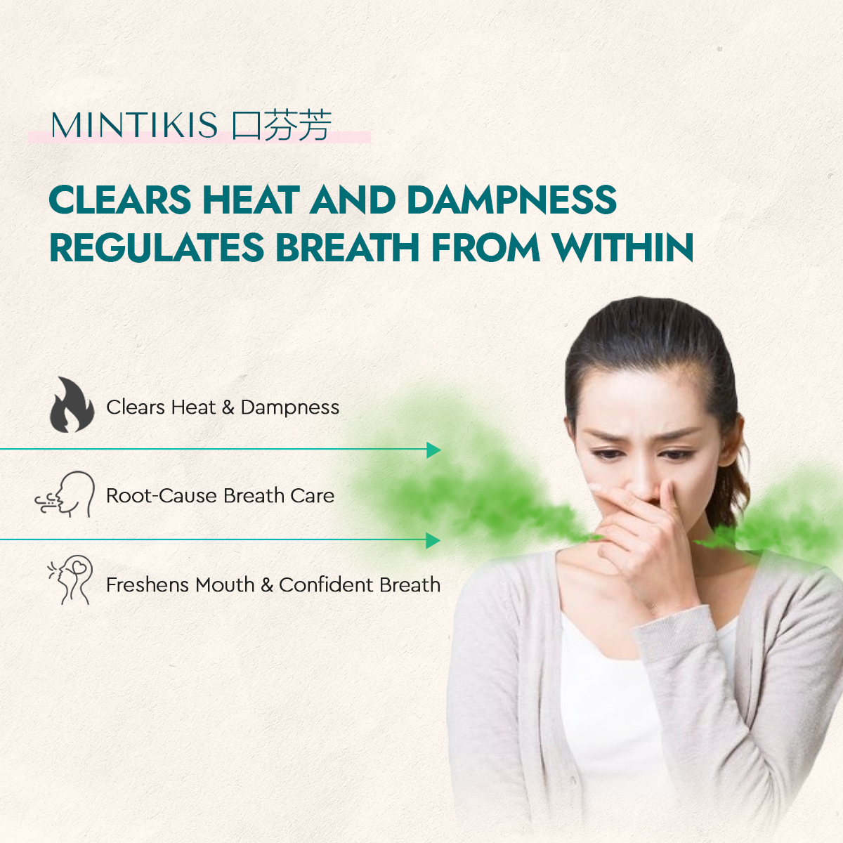 清新口氣,要由「腸胃清、濕氣走」開始。【口芬芳】唔單止令你口腔清爽,更係提升身體內在嘅「清潔力」,俾你由內到外都清新,自然更有自信。