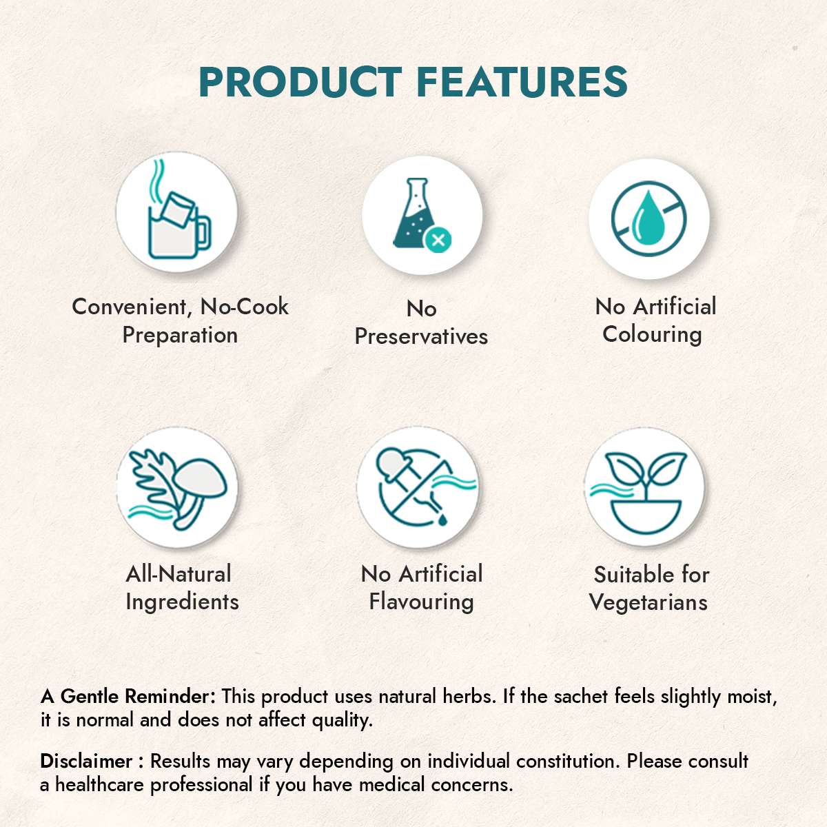 此湯附加了精選姬松茸及黑棗以增添口感,更入口香醇。(內含牛膝及女貞子, 主壯骨補膝及強壯胫骨)